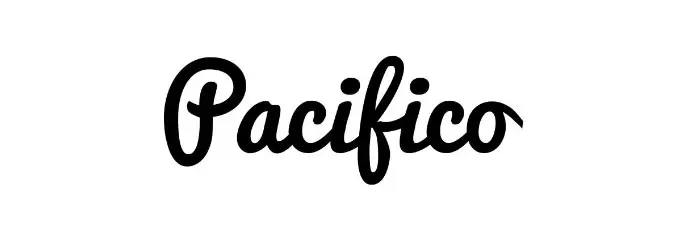 La siguiente tipografía para logos es la Pacifico, que es una fuente script, lo que viene a decir que la escritura tiende a ser cursiva y es manuscrita. Fue diseñada por Vernon Adams y es conocida por su estilo relajado y dulce.