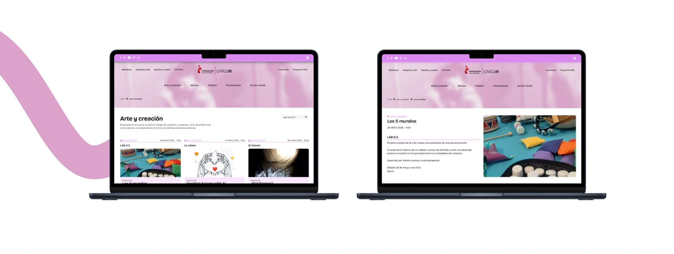 Civican necesitaba una solución que les permitiera gestionar de manera autónoma y eficiente su programación de actividades. La herramienta debía integrarse en el entorno digital de la Fundación y permitir tanto la creación de eventos como la inscripción de usuarios de forma gratuita y controlada, respetando el límite de plazas disponibles.