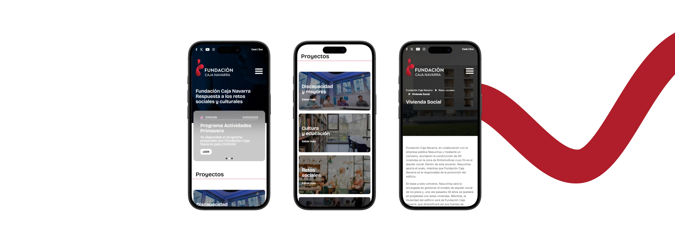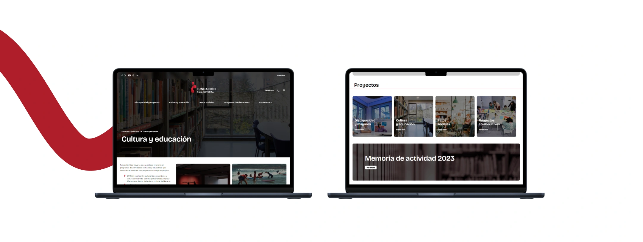 Fundación Caja Navarra requería una transformación profunda de su presencia digital. La web anterior no reflejaba su identidad actual ni facilitaba la actualización de contenidos por parte del equipo. El reto era doble: crear una imagen renovada alineada con sus valores y desarrollar un sistema de gestión de contenidos (CMS) que les otorgara total autonomía para actualizar información institucional, actividades y noticias.